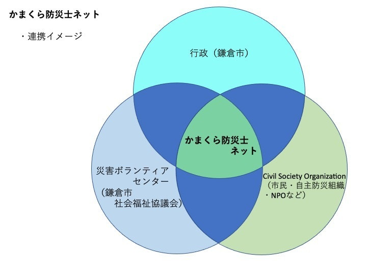 来たるべき災害に備え鎌倉に在住、在勤の防災士の顔の見える関係作りや3者連携のサポートなど地域防災を担う市民団体「かまくら防災士ネット」。